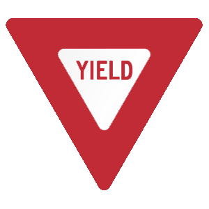 This type of triangular sign means drivers must yield. You must slow down as you come to an intersection marked with this sign and be prepared to stop. Let any other vehicles, bicyclists, or pedestrians pass safely before you proceed.